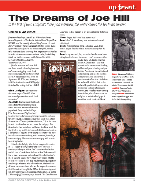 It can finally be revealed! You've seen the cover, now take a look at the inside of Comic Book Creator # 44 with the first part of my three part interview with Joe Hill.