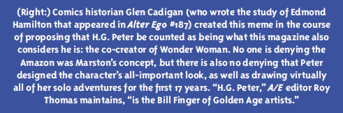 Back when the first Wonder Woman movie came out, I sent Roy a graphic that I designed featuring WW co-creator Harry G. Peter asking, "What about Harry?" Then, as now, Harry hadn't been acknowledged as WW's co-creator, a fact which both I and the editor of AE feel is a wrong that needs to be righted. Since that was many years ago I had completely forgotten about it,
